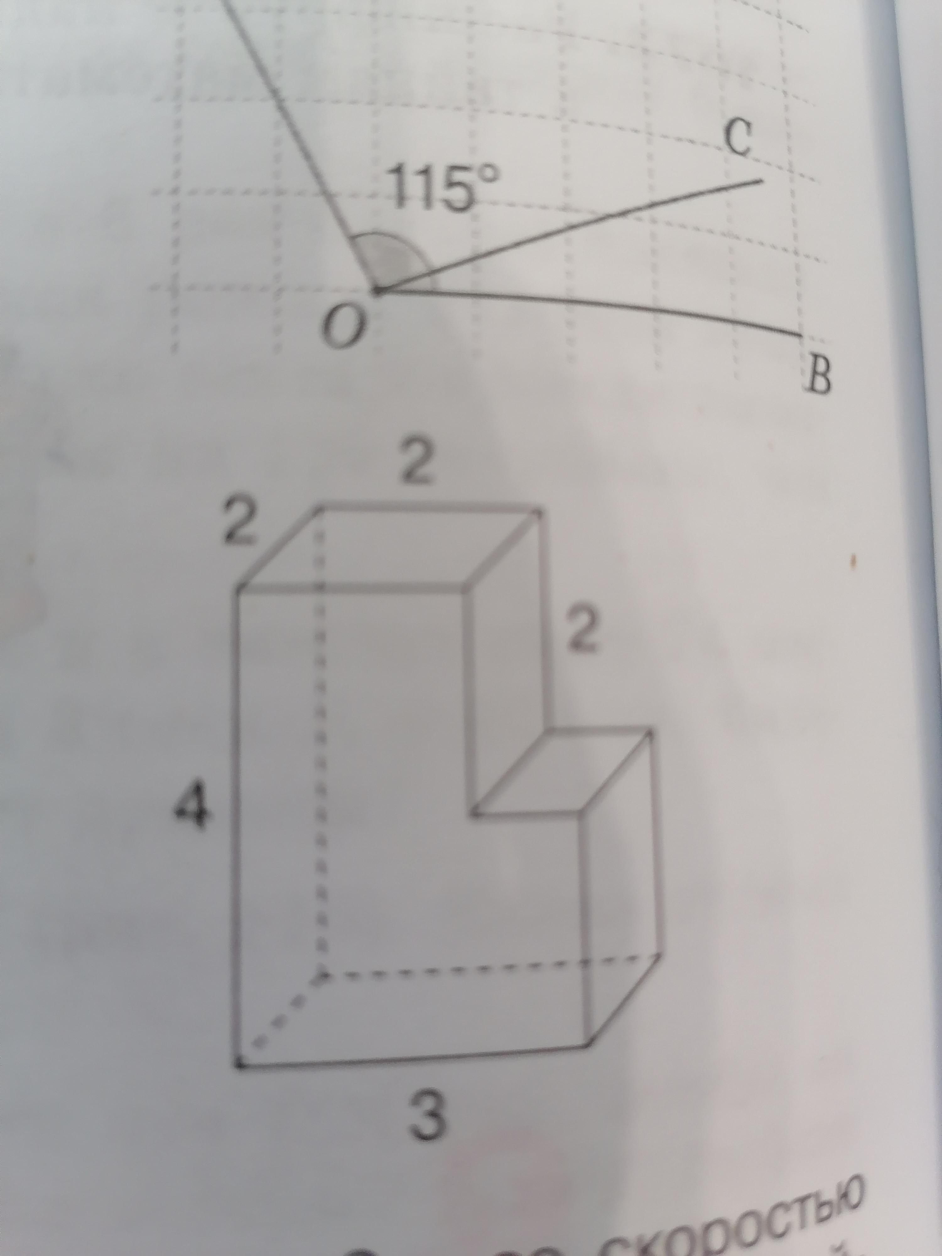Объём фигуры, изображенной на рисунке, можно найти вычитанием объёма прямоугольного параллелепипеда размерами 1х2х2 из объёма прямоугольного параллелепипеда размерами 3х2х4.