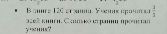решите пожалуйста в книге 120 страниц ученик прочитал 3/5 всей книги Сколько страниц прочитал ученик ?