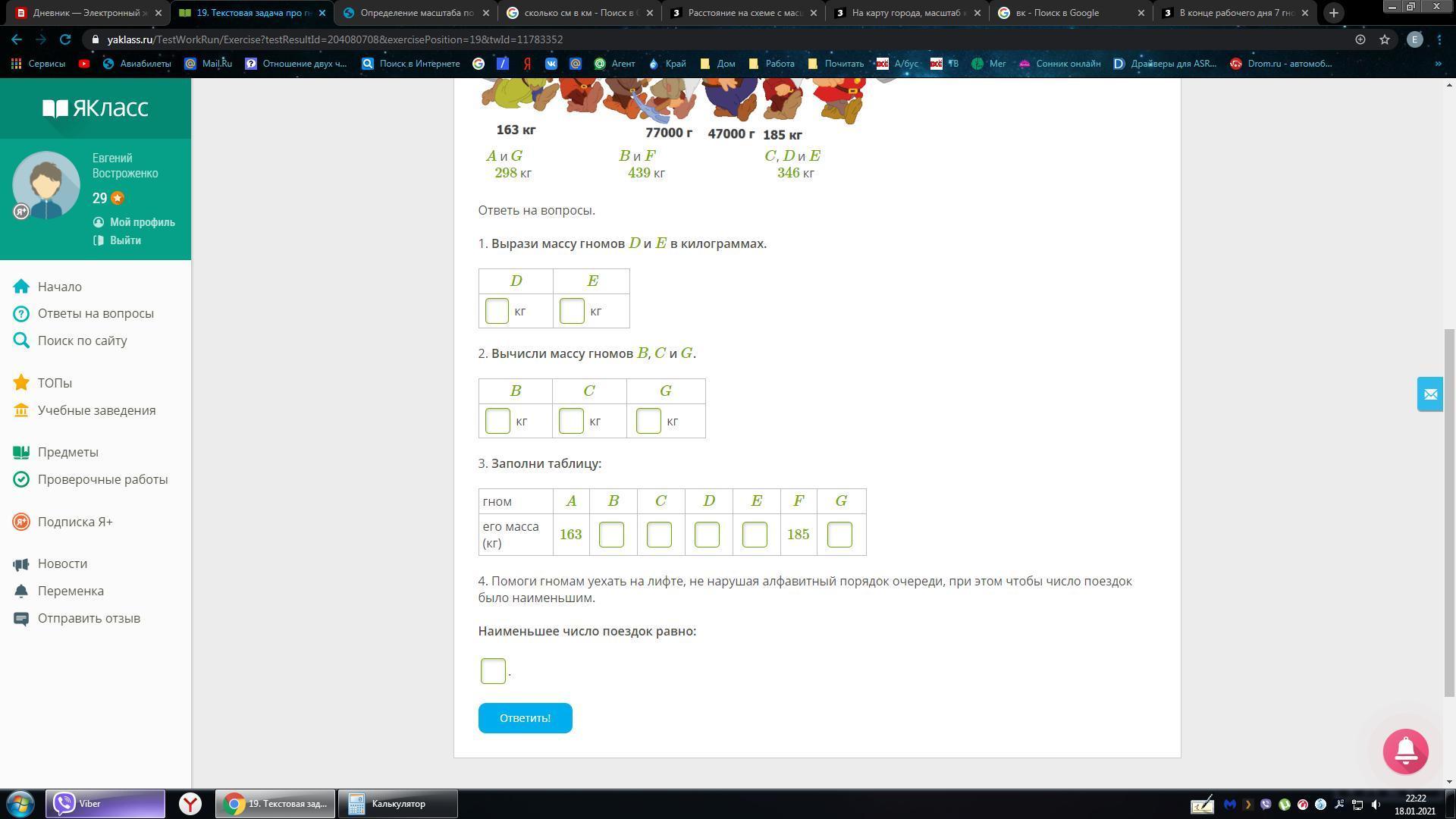 Некоторые гномы не знают свой вес, однако известен общий вес некоторых гномов (см. рис.).