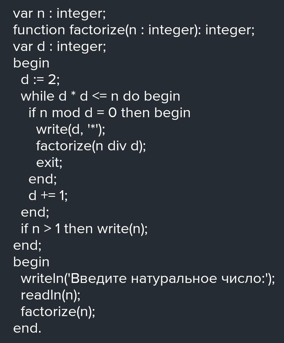 Напишите рекурсивную функцию, которая раскладывает число на простые сомножители.