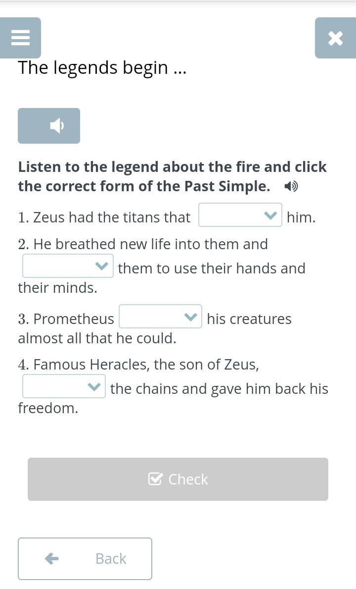 Listen to the legend about the fire and click the correct form of the Past Simple.