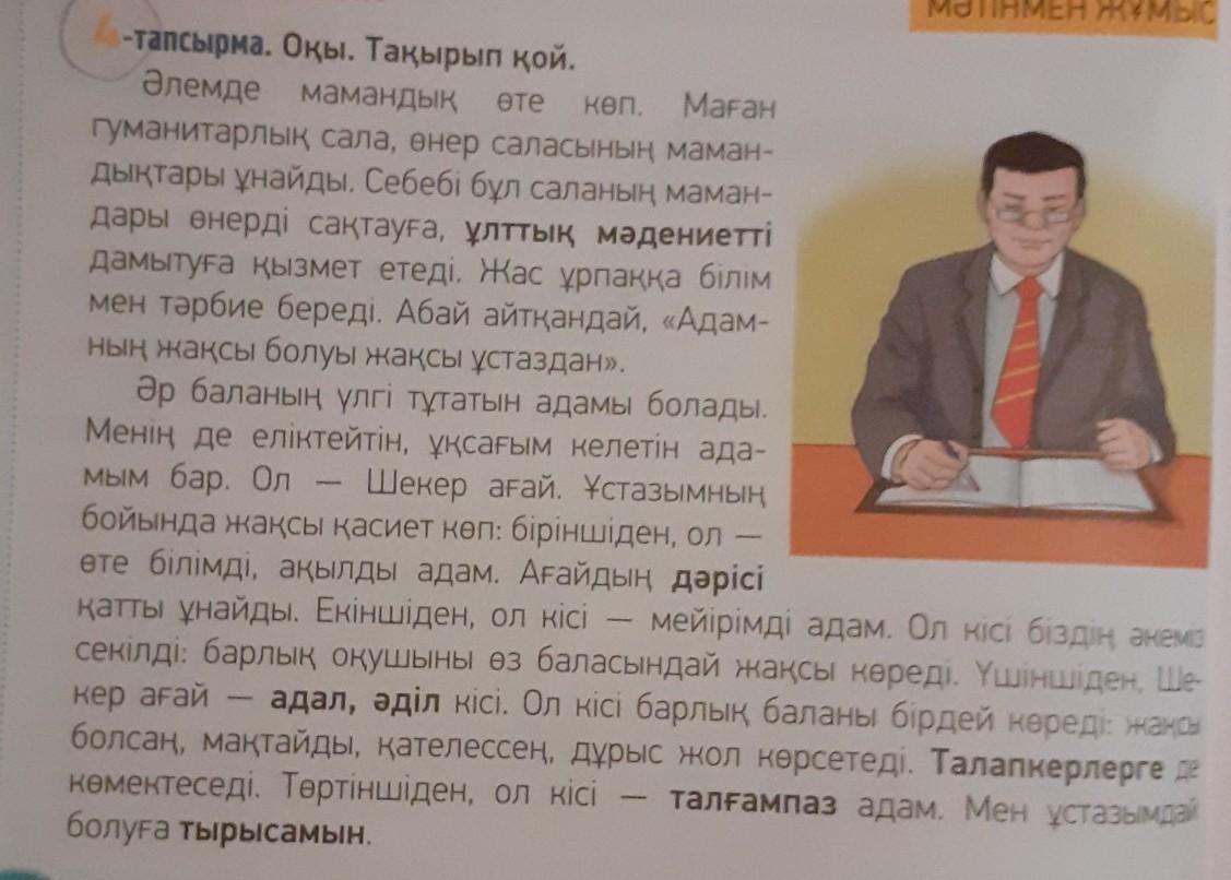 Мәтіндегі қою қаріппен берілген сөздерден сөйлем құра.