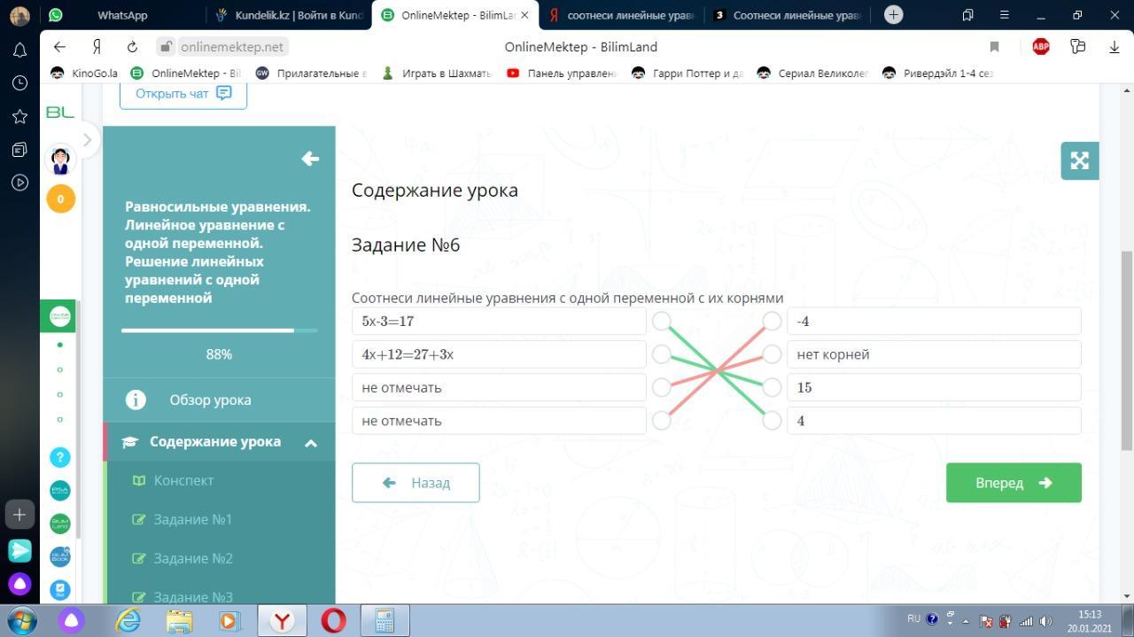 Соотнеси линейные уравнения с одной переменной сих корнями