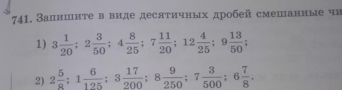 1)3 1/20 ; 2 3/50 ; 4 8/25 ; 7 11/20; 12 4/25 ; 9 13/50