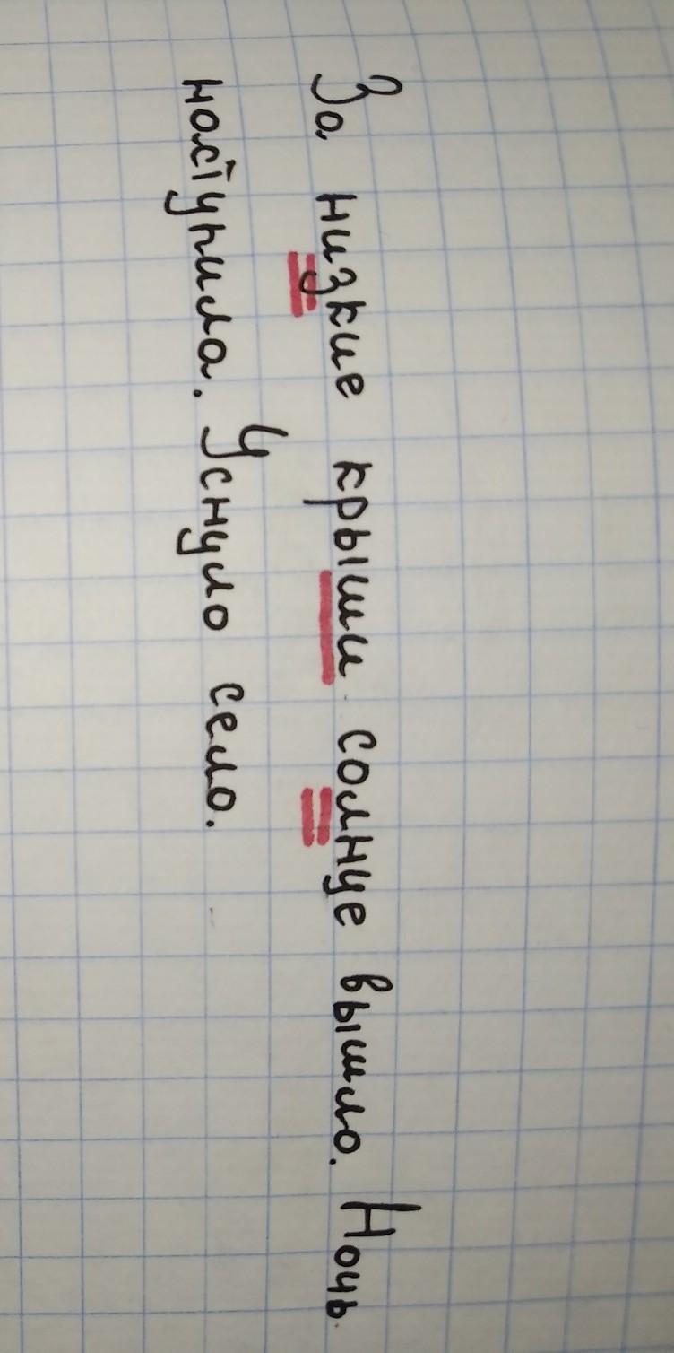 За низкие крыши Солнце вошло. Ночь наступило.Уснуло село. Подчеркнуть орфограмы! Пжалуйста помогите я не понимаю какие орфограмы... Заранее спасибо)
