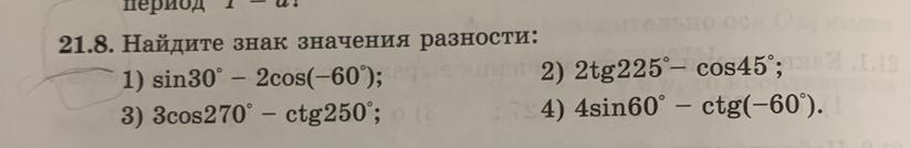 3) отрицательный. ctg250=ctg(70) нету в таблице, но он точно больше 0