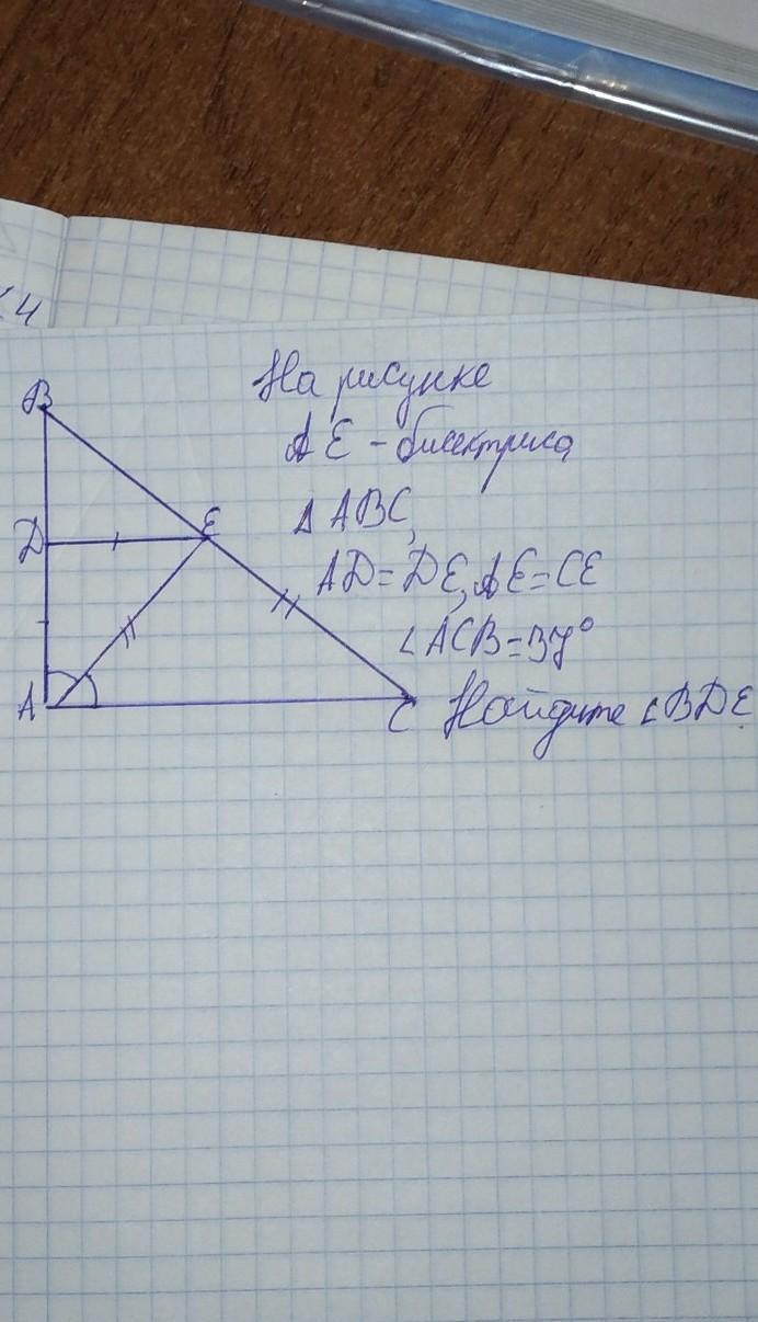 если судить по рисунку, то это должен быть прямоугольным треугольником, значит bde равно 90 град