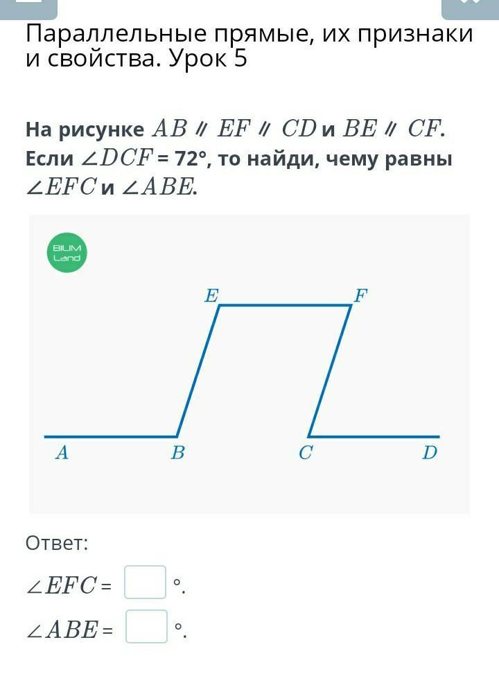 Объяснение: угол ЕFC=72 как внутренние накрест лежащие