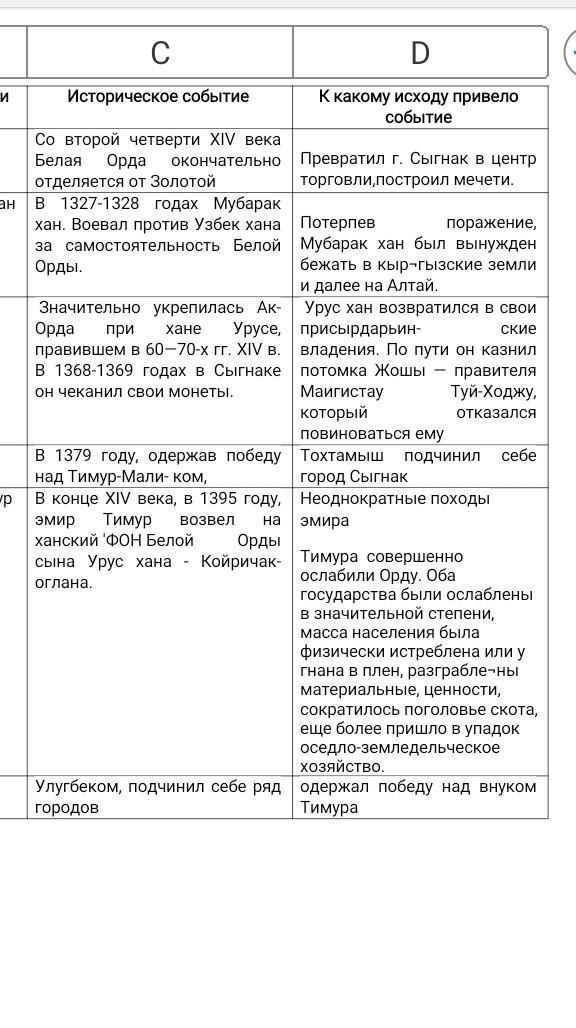 Заполните таблицу Ау Орда