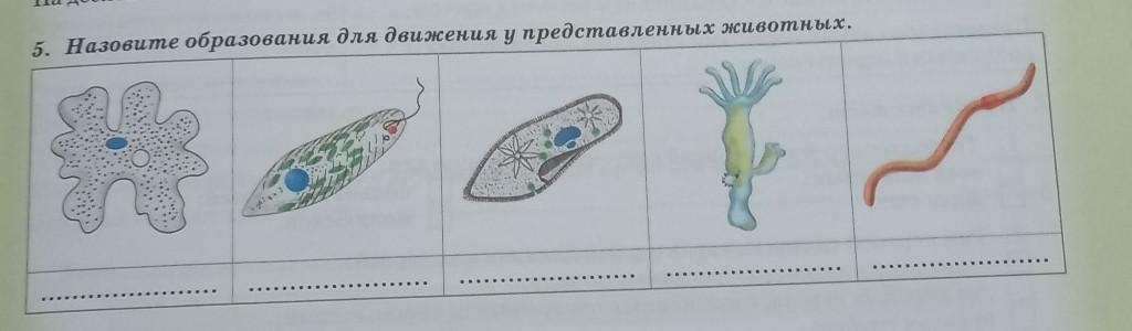 5. Назовите образования для движения у представленных животных.