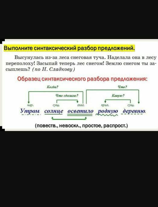 засыпай(гл, двумя чертами) теперь(точка тире) лес(сущ, одной чертой) снегом(сущ, точка тире) (повеств, воскл, простое, распр)