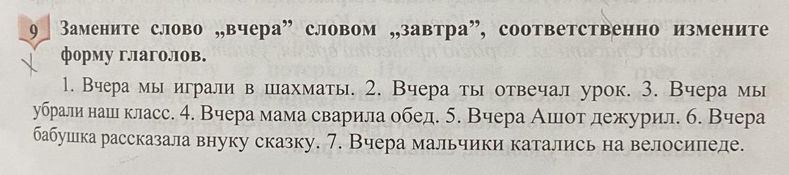 5. Завтра Ашот дежурит.