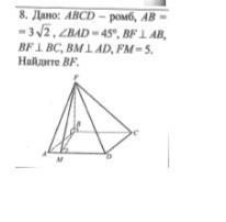 В вашей залаче FB перпендикулярна к BC и BA , значит FB перпендикулярна к плоскости ромба