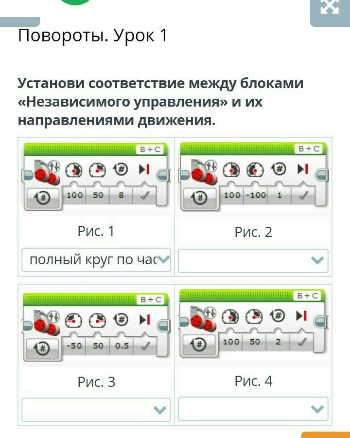 Установи соответствие между блоками «Независимого управления» и их направлениями движения.