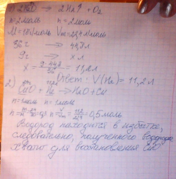 воды электрическим током массой 9г? Вычислите, хватит ли полученного водорода