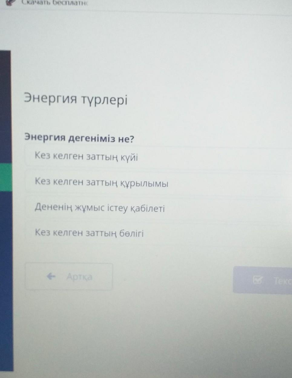 Себебі дененің жұмыс істеу қабілетін нақты көрсететін физикалық шама - Энергия деп аталады.