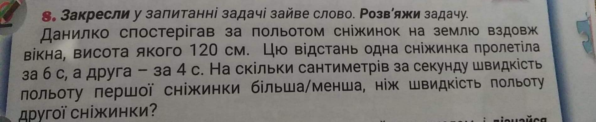 3) 30-20=10 (см/с) - на столько см/с скорость 1 снежинки меньше скорости 2 снежинки