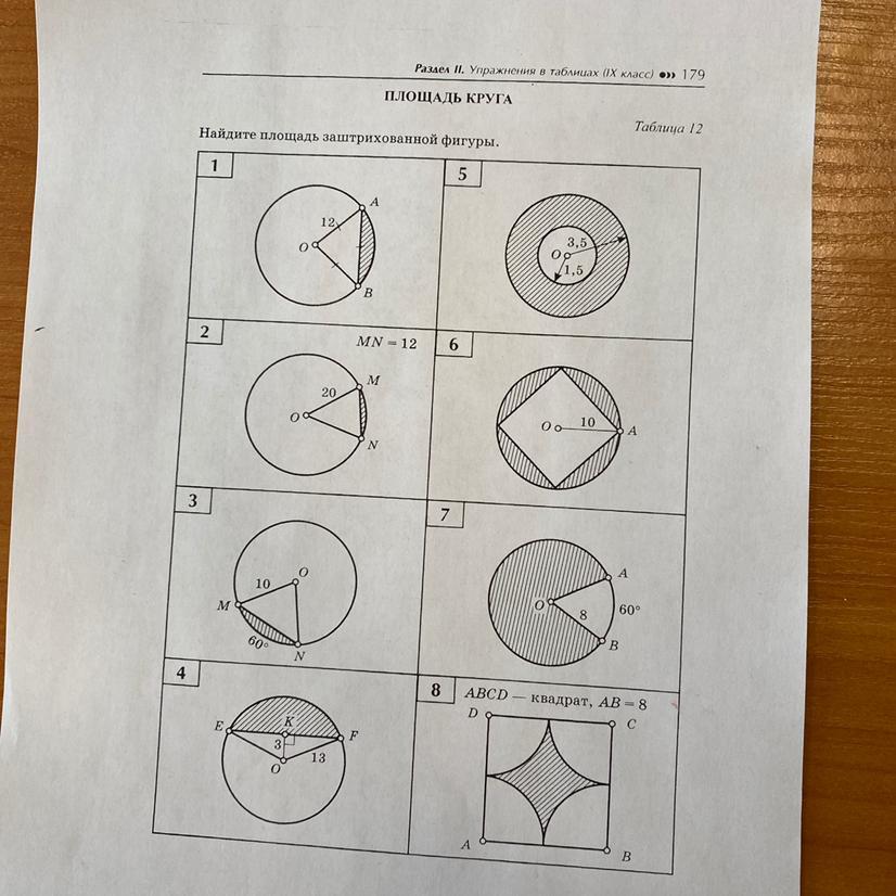 7. Тут просто, как я выше писал "Угол с вершиной в центре окружности называется центральным углом. Градусная мера центрального угла равна градусной мере соответствующей дуги окружности" Угол BOA - 60 градусов и 1,047197551 радиан, тогда сектор равен: Sсек = (1,047197551/2)*8^2 = 33,51032163