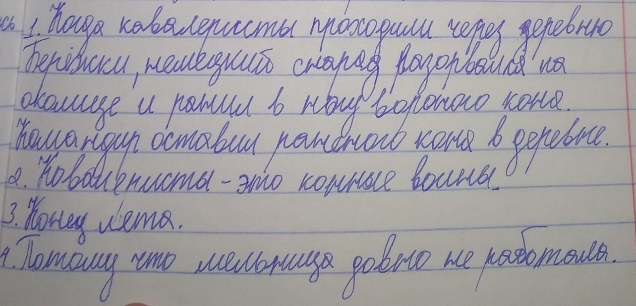 3) В какое время года проходил отряд кавалеристов через деревню?