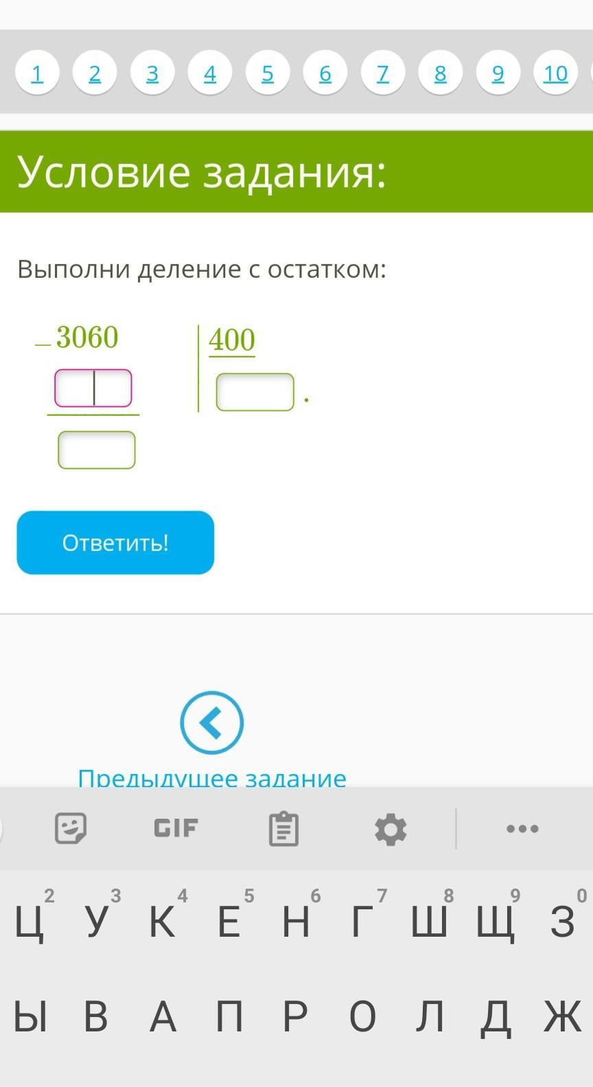 ответ: 7 остаток: 260
