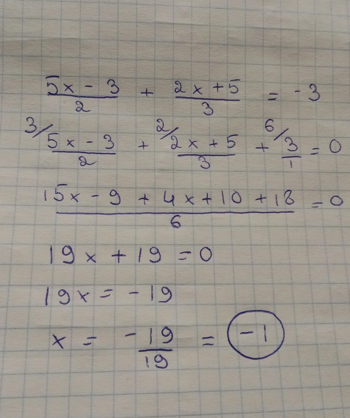 5x-3 разделить на 2 + 2х+5 разделить на три = -3
