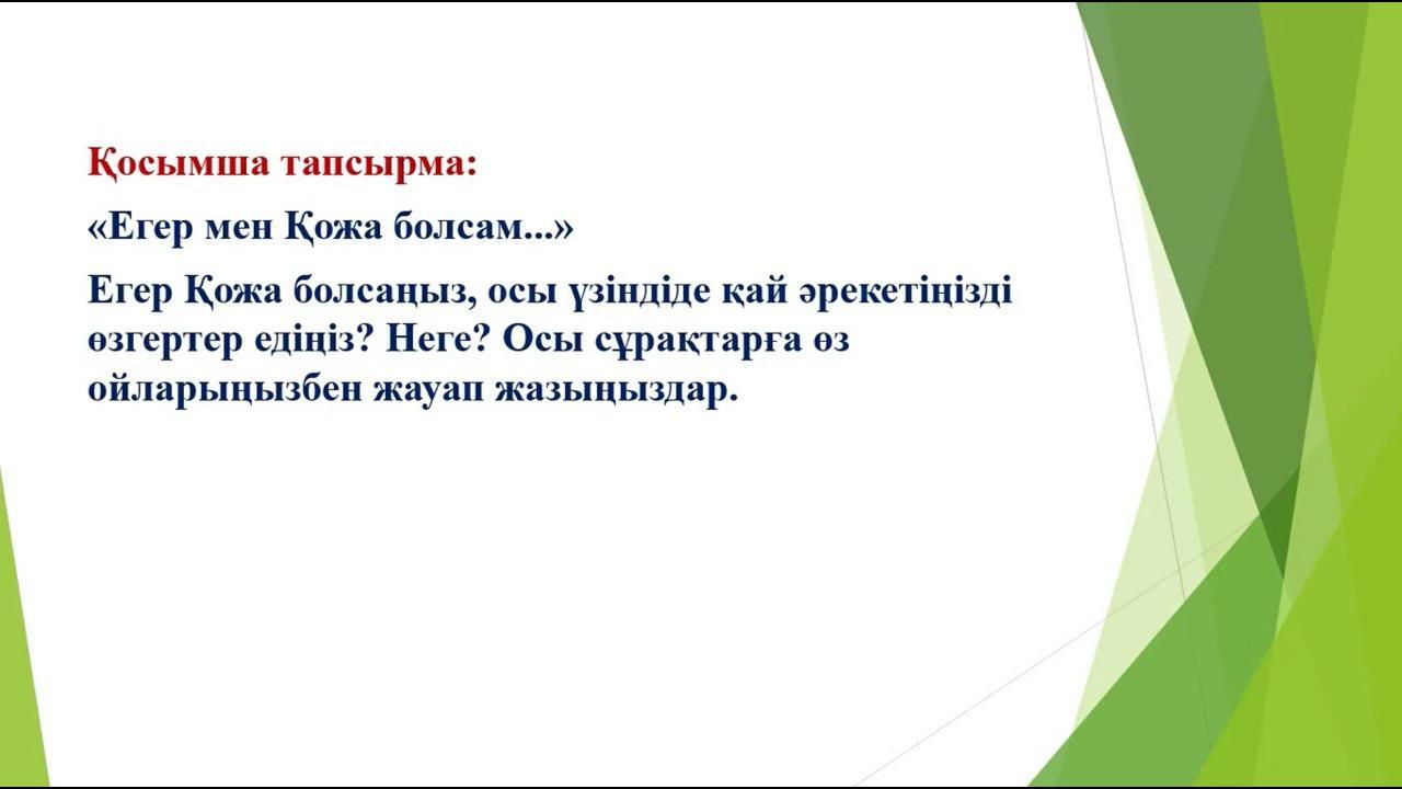 Егер мен Қожа болсам:бұзақы әрекеттерді жасамай,үлкендерді сыйлар едім!