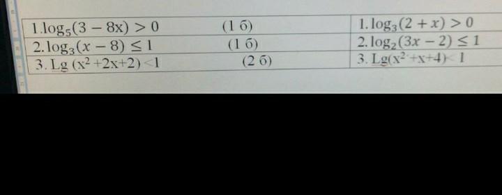 1)log⁵(3-8x)>0= log⁵(3-8x)>0, x<3/8