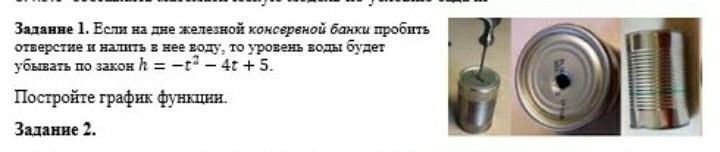 Если на дне железной консервной банке пробить отверстие и налить в нее воду, то уровень воды будет убывать по закон h= -t²-4t+5 постройте график функци помогите пожалуйста плизззз