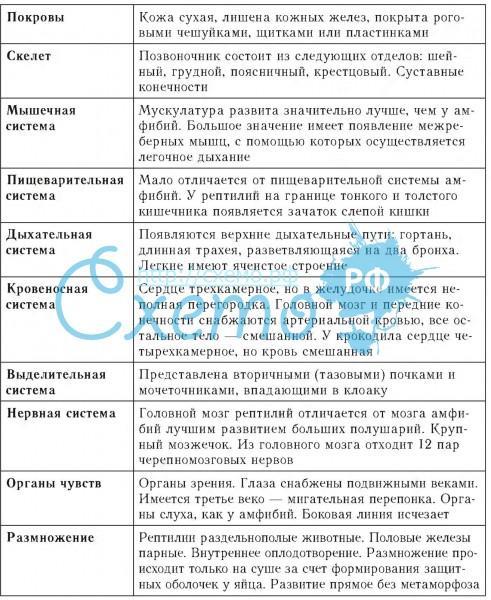 Помогите с биологией 7 класса, нужна таблица по пресмыкающимся
