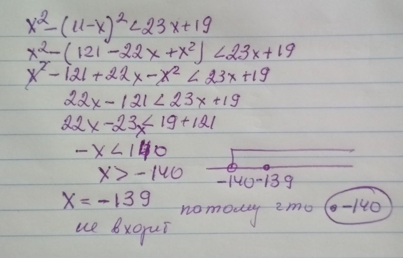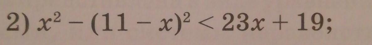 Найдите наименьшее число, являющееся решением неравенства 2) x^2 – (11 - x)^2 < 23x + 19;