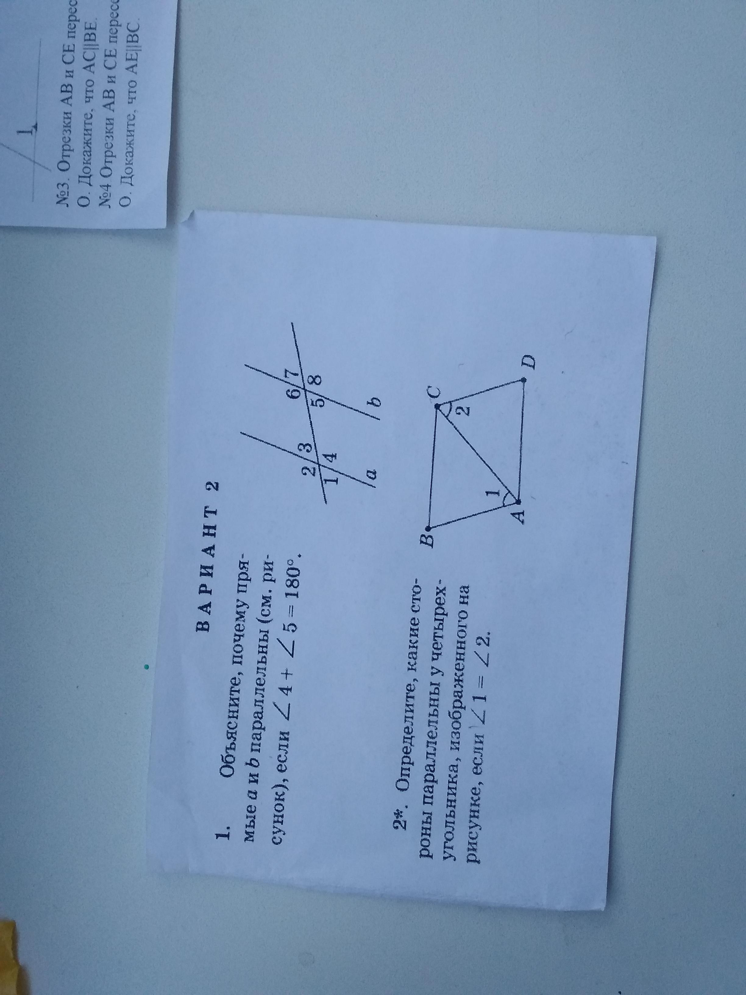 Извини что криво расскажу, но как я помню 4 и 5 угол это соответствующие углы и их сумма будет 180°. (если что это вариант 2 первое задание). Но лучше дождись ответа получше чем мой.