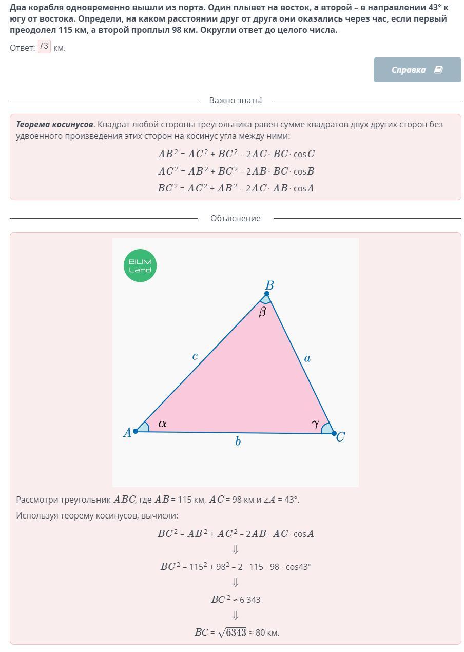 Два корабля одновременно выехали из порта. Один плывет на восток, второй - в направлении..