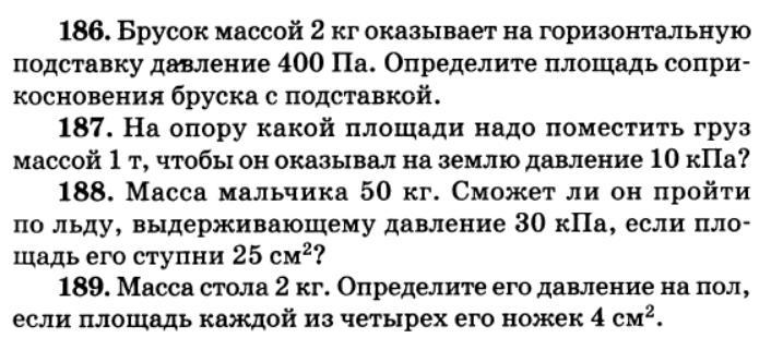 Нам известна масса и давление. Нужно найти площадь