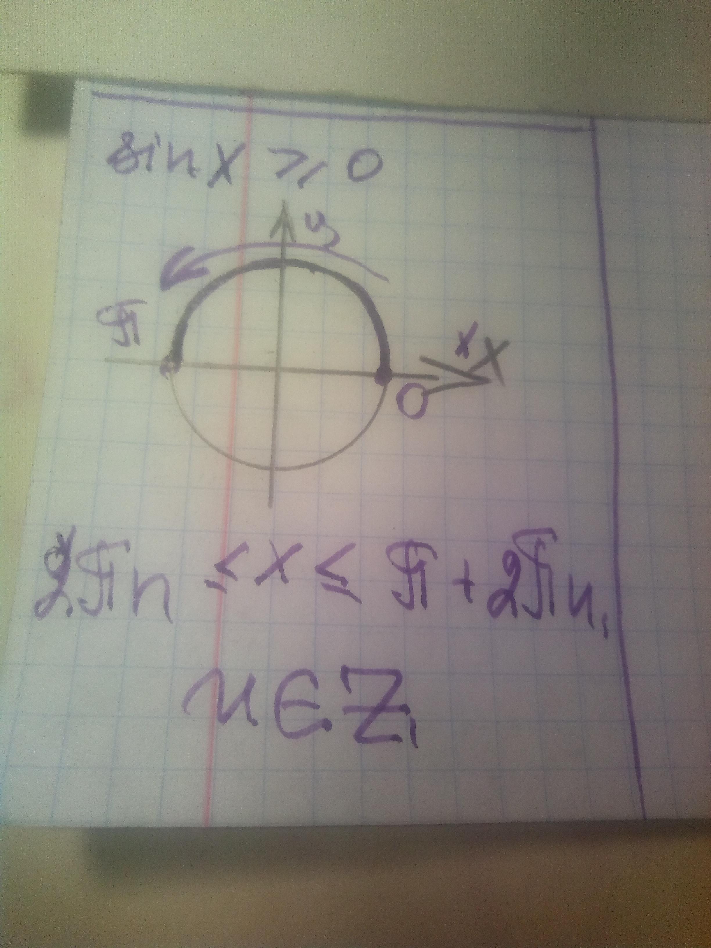 Помогите решить тригонометрическое неравенство sinx >= 0