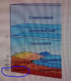 По рисунку определите нижнюю границу биосферы, запишите название,