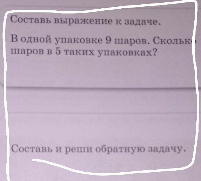 составь выражение к задаче в одной упаковке 9 шаров сколько шаров в 5 таких упаковок Составь и реши обратную задачу