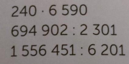 Вычисли.Выполни проверку. столбиком 240*6590,694 902:2301,1556 451:6201