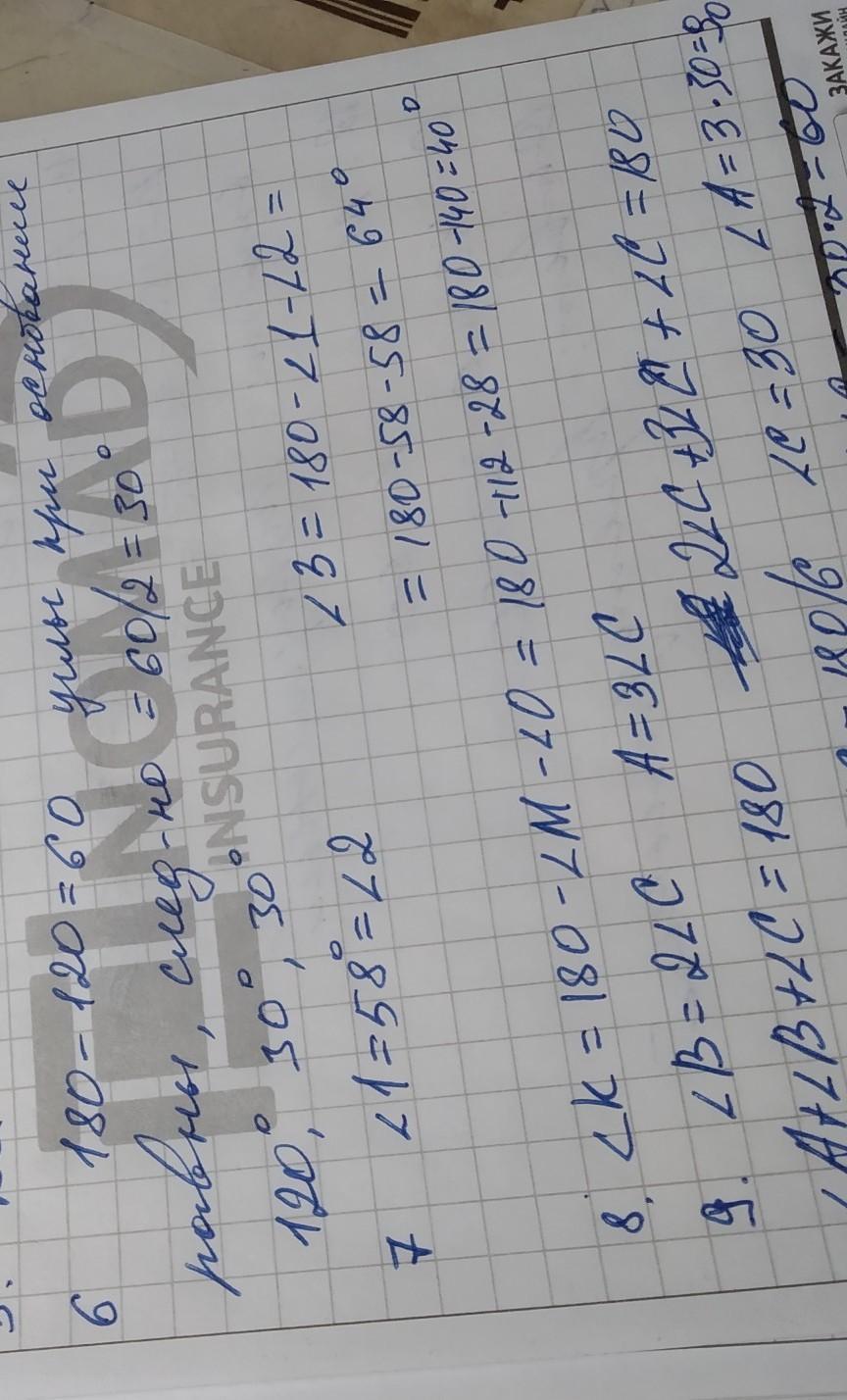 1) нет2)нет3)180°4)острые5)так 6) 30°и30°7)64°8)40°9)