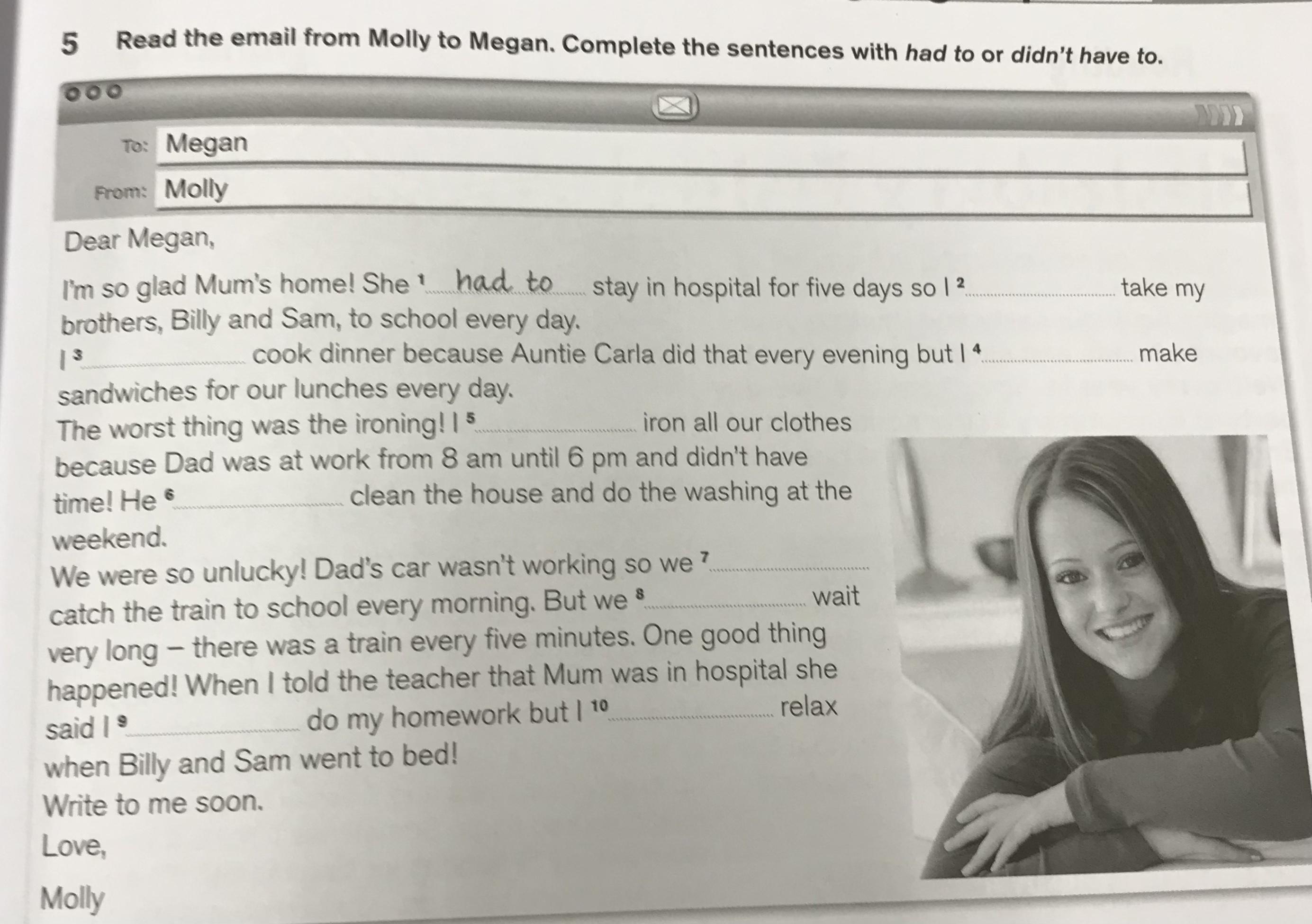 3- I didn’t have to cook dinner because Auntie Carla did that every evening but I 4- HAD TO make sandwiches for our luches every day