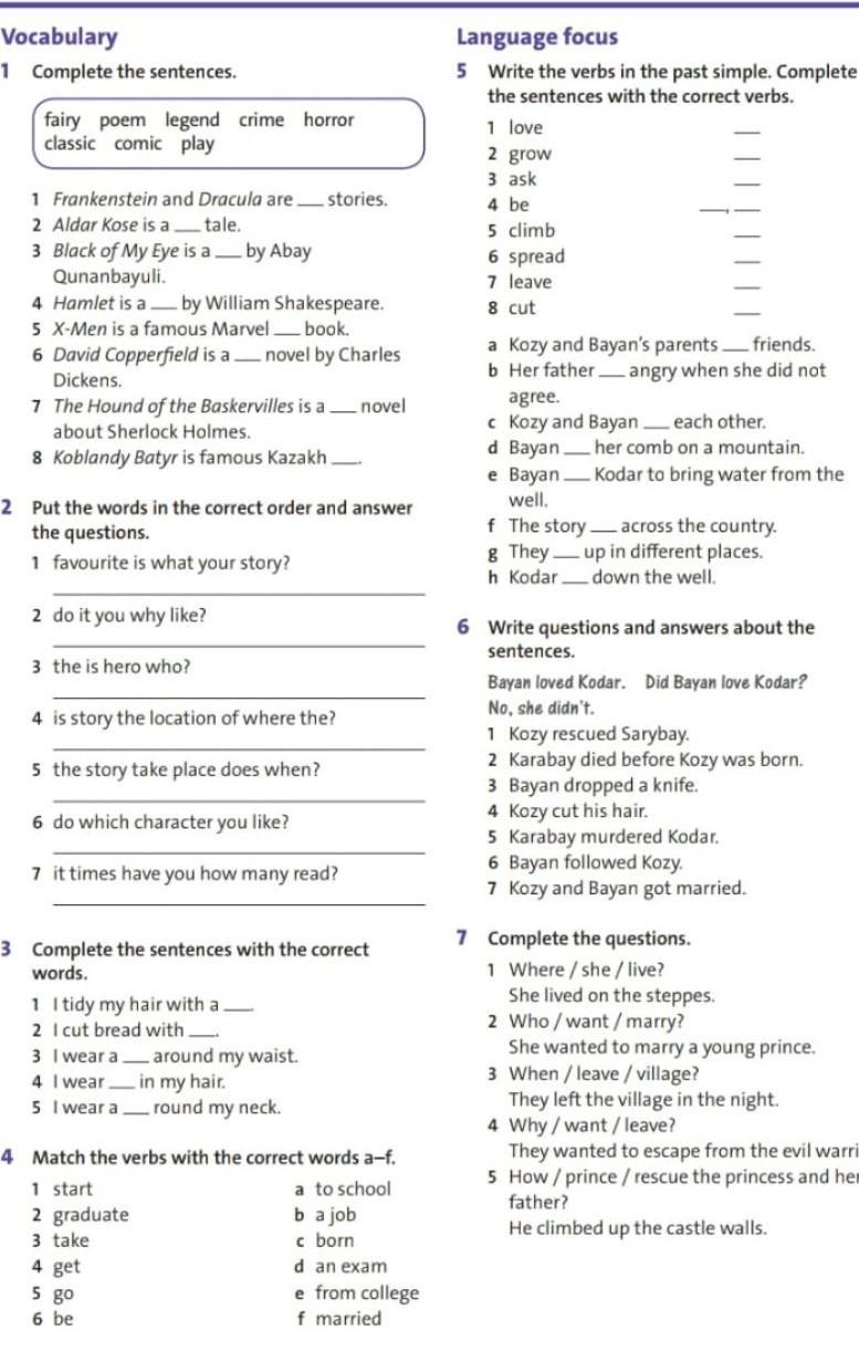 1) horror; fairy; poem; play; comic; classic; crime; legend
