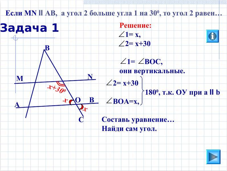 Если MN II AB, а угол 2 больше угла 1 на 300, то угол 2 равен…