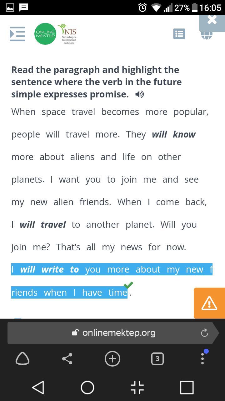 Read the paragraph and highlight the sentence where the verb in the future simple expresses promise. •