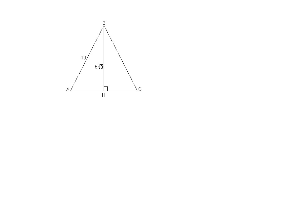 боковая сторона равнобедренного треугольника равна 10 см, а высота проведенная к основанию 5√3 см см,найти углы треугольника