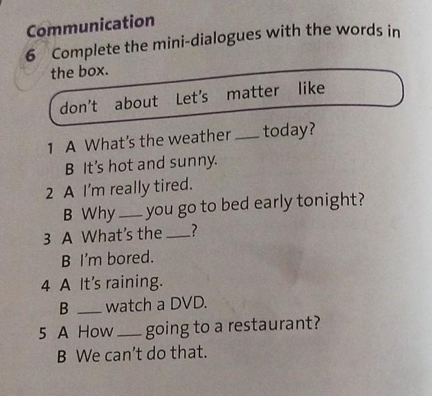 6. Complete the mini-dialogues with the words in the box.