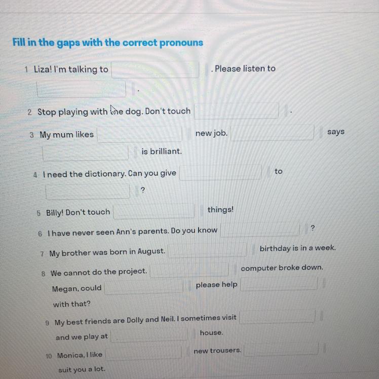 9) My best friends are Dolly and Neil. I sometimes visit them and we play at their house. (Долли и Нейл мои лучшие друзья. Я иногда захожу к ним и мы играем в их доме.)