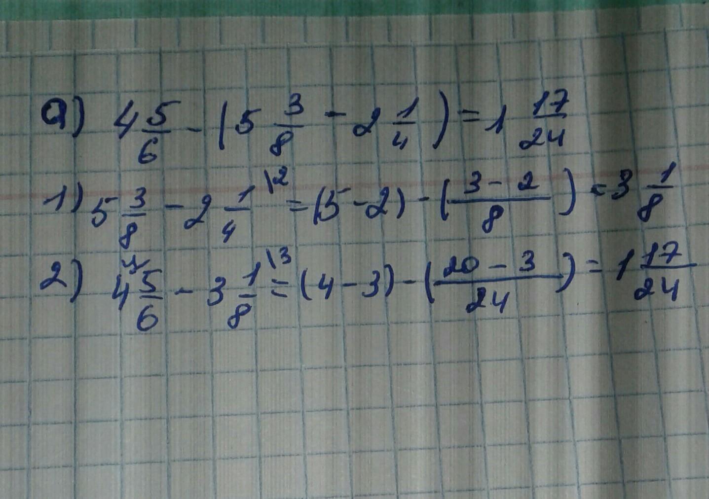 а) 4 5/6-(5 3/8-а) если а=2 1/4