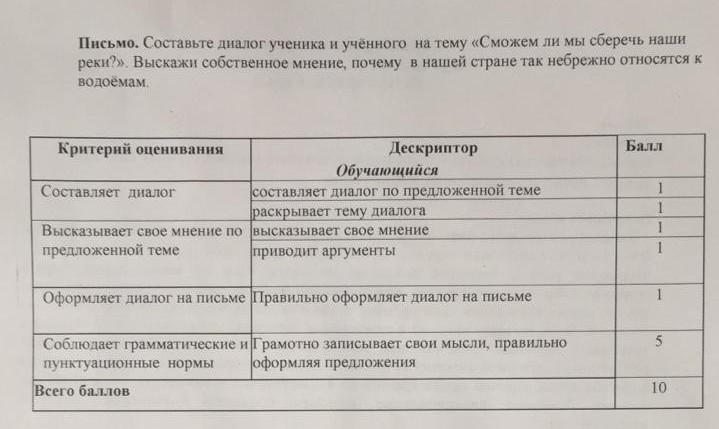 Письмо. Составьте диалог ученика и ученного на тему «Сможем ли мы сберечь наши реки?». Выскажи собственное мнение, почему в нашей стране так небрежно относятся к водоемам.