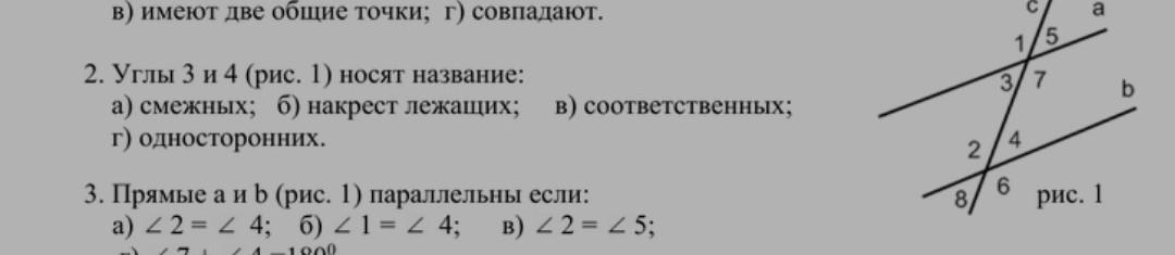 Углы 3 и 4 (рис. 1)носят название: а)смежных соответственный