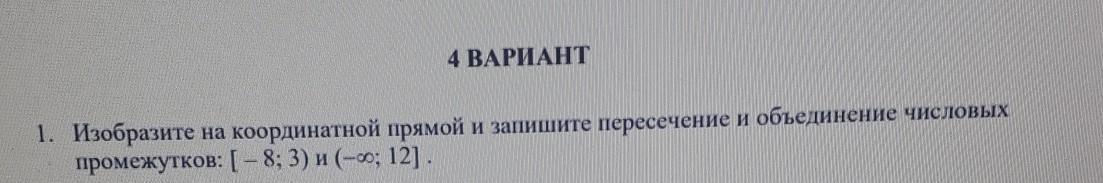 1. Изобразите на координатной прямой и запишите пересечение и объединение числовых