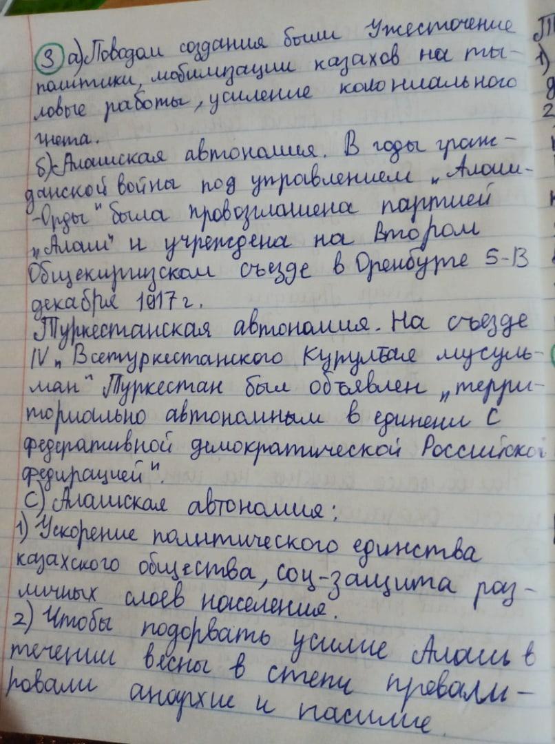 с) укажите два последствия создания Алашской и Туркестанской автономии
